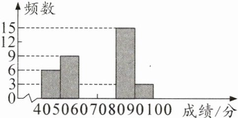 由频数分布直方图可知,成绩在60分以下的学生频数为6+9=15(名)。