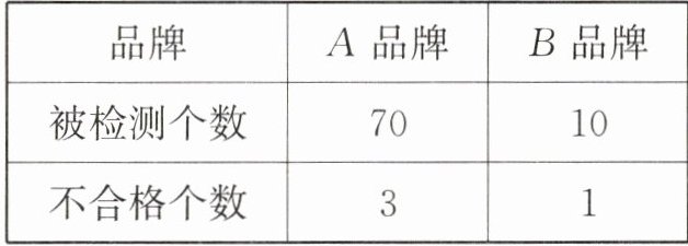 (3) 如果此次调查了两种品牌的节能灯,数据如下表所示,有人由此认为“A 品牌的不合格率比 B 品牌低,更让人放心”,那么你同意这种说法吗? 为什么?