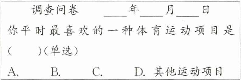 1. (教材 P8 习题 4 变式)某班级组织活动,为了解同学们喜爱的体育运动项目,设计了如下尚不完整的调查问卷: