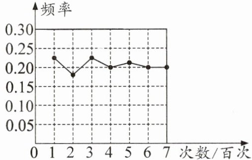 推理能力 数学课上,李老师与学生们做“用频率估计概率”的试验:在一个不透明的袋子中有5个白球、3个红球和2个黄球,这些球除颜色外无其他差别.搅匀后从袋子中任意摸出一个球,某种颜色的球出现的频率如图所示,则该球的颜色最有可能是