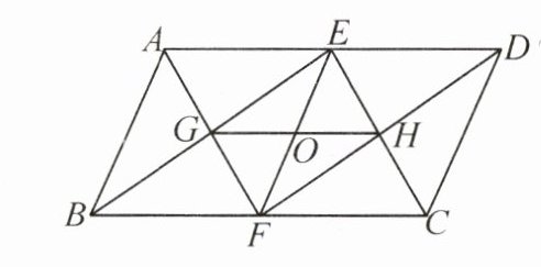 答案:4.AB//CD,且AB = CD. 理由如下:因为EF = 2OE,GH = 2OG,所以OE = OF,OG = OH. 所以四边形EGFH是平行四边形. 所以GF//HE,即AF//CE. 因为AD//BC,所以AE//CF. 所以四边形AFCE为平行四边形. 所以AE = CF. 同理,得DE = BF. 所以AE + DE = CF + BF,即AD = BC. 所以四边形ABCD为平行四边形. 所以AB//CD,且AB = CD.