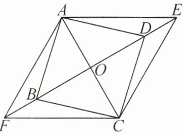 模型观念 如图,在$□ ABCD$中,对角线$BD$,$AC$相交于点$O$,$E$,$F$两点分别在$BD$,$DB$的延长线上,且$DE=BF$,连接$AE$,$AF$,$CF$,$CE$.
