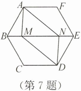 7. 如图,在正六边形$ABCDEF$中,$M$,$N$是对角线$BE$上两点,连接$AM$,$DM$,$DN$,$AN$.添加下列条件中的一个:①$BM=EN$;②$\angle FAN=\angle CDM$;③$AM=DN$;④$\angle AMB=\angle DNE$.其中能使四边形$AMDN$是平行四边形的是