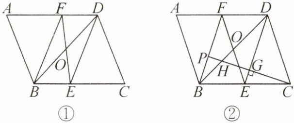 9. 如图①,在$□ ABCD$中,$O$是对角线$BD$的中点,点$E$在边$BC$上,$EO$的延长线与边$AD$交于点$F$,连接$BF$,$DE$.