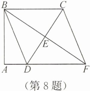 8. 亮点原创 如图,在四边形$ABCD$中,$\angle A=\angle ABC=90^{\circ}$,$E$是边$CD$的中点,连接$BE$并延长,交$AD$的延长线于点$F$,连接$CF$,$BD$.若$BC=CF=13$,$AD=5$,则三角形$ABF$的面积为