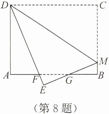 8. (2025·江苏南京期末)如图,在矩形纸片 ABCD 中,AD = 8,AB = 10,M 为 BC 上一点,连接 DM,将△CDM 沿 DM 翻至△EDM,EM 交 AB 于点 G,ED 交 AB 于点 F,当 BG = EG 时,CM 的长是