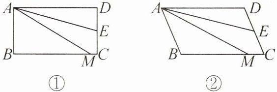 10. 如图①,四边形 ABCD 是矩形,M 是边 BC 上一点,E 是边 CD 的中点,且 AE 平分∠DAM.