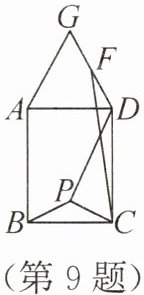 9. (2024·四川德阳)如图,四边形 ABCD 是矩形,△ADG 是等边三角形,F 是 GD 的中点,P 是矩形 ABCD 内部一点,且△PBC 是以 BC 为底的等腰三角形,连接 PD,CF,则△PCD 的面积与△FCD 面积的比值是