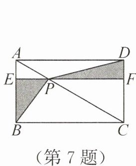 7. 如图,$P$是矩形$ABCD$的对角线$AC$上一点,过点$P$作$EF// BC$,分别交$AB$,$CD$于$E$,$F$两点,连接$PB$,$PD$. 若$AE=2$,$PF=8$,则图中阴影部分的面积为 (
