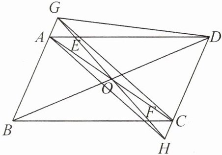 答案:11. (1) 因为四边形 ABCD 是平行四边形,所以 OB = OD,AB = CD,AB // CD,即 BG // DH. 所以 ∠BGO = ∠DHO. 又 ∠BOG = ∠DOH,所以 △BOG ≅ △DOH(AAS).
