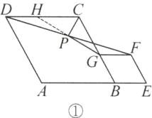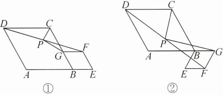 推导探究如图①,在菱形ABCD和菱形BEFG中,A,B,E三点在同一条直线上,P是线段DF的中点,连接PG,PC.