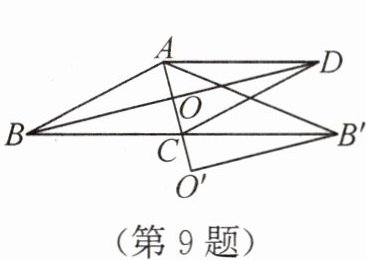 9. 如图,菱形ABCD的对角线AC,BD交于点O,将△BOC绕点C旋转180°得到△B'O'C.若AC=4,AB'=10,则菱形ABCD的边长是
