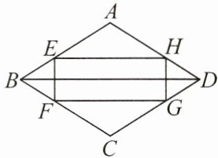 答案:11.(1)四边形EFGH是矩形.理由如下:因为四边形ABCD是菱形,所以AB=BC=CD=DA,∠ABC=∠ADC,∠A=∠C,即∠ABD=∠ADB.又BD=BD,所以△ABD≌△CBD (SSS).所以∠ABD=∠CBD,即BD平分∠ABC.又∠A+∠ABD+∠ADB=180°,所以∠ABD=$\frac{1}{2}$(180° - ∠A).又BE=BF=DG=DH,所以△BEF≌△DHG(SAS),AB - BE=AD - DH=BC - BF=CD - DG,BD⊥EF,即EF=HG,AE=AH=CF=CG.所以∠AEH=∠AHE,△AEH≌△CFG(SAS).所以EH=FG,即四边形EFGH是平行四边形.又∠A+∠AEH+∠AHE=180°,所以∠AEH=$\frac{1}{2}$(180° - ∠A),即∠AEH=∠ABD.所以EH//BD,即EH⊥EF.所以∠FEH=90°,所以四边形EFGH是矩形.