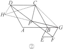 (3) 如图②,将图①中的菱形BEFG绕点B按顺时针方向旋转,使菱形BEFG的边BG恰好与菱形ABCD的边AB在同一条直线上.若∠ABC=∠BEF=60°,请直接写出PG与PC之间的数量关系.