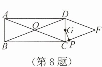 8. 如图,$□ ABCD$ 的面积为 $12$,$AC = BD = 6$,$AC$ 与 $BD$ 交于点 $O$,分别过 $C$,$D$ 两点作 $BD$,$AC$ 的平行线相交于点 $F$,$G$ 是 $CD$ 的中点,$P$ 是四边形 $OCFD$ 边上的动点,连接 $PG$,则 $PG$ 的长的最小值是(