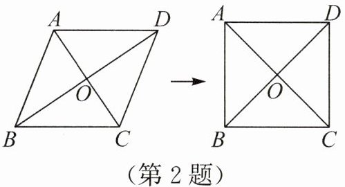 2. (2025·四川乐山)如图,在 $□ ABCD$ 中,对角线 $AC$ 与 $BD$ 相交于点 $O$。小乐同学欲添加两个条件使得四边形 $ABCD$ 是正方形,现有三个条件可供选择:① $AC⊥ BD$;② $AC = BD$;③ $\angle ADC = 90^{\circ}$。则正确的组合是