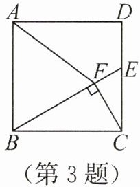 3. (教材 $P86$ 习题 $15$ 变式)(2025·北京)如图,在正方形 $ABCD$ 中,点 $E$ 在边 $CD$ 上,连接 $BE$,过点 $C$ 作 $CF⊥ BE$,垂足为 $F$,连接 $AF$。若 $AB = 1$,$\angle EBC = 30^{\circ}$,则 $\triangle ABF$ 的面积为