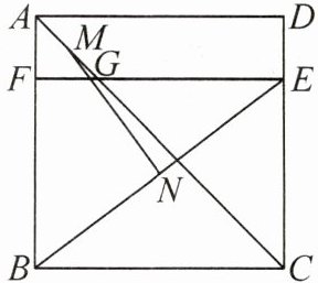 在$\triangle ABF$和$\triangle CBF$中,$\{\begin{array}{l}AB=CB\\\angle ABF=\angle CBF\\BF=BF\end{array} $,所以$\triangle ABF\cong\triangle CBF(SAS)$,所以$AF=CF$,则$AF=MN$。