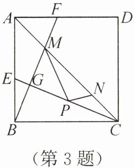 3. 如图,在正方形 $ ABCD $ 中,$ CE $ 平分 $ \angle ACB $,交 $ AB $ 于点 $ E $,点 $ F $ 在边 $ AD $ 上,且 $ AF = BE $,连接 $ BF $ 交 $ CE $ 于点 $ G $,交 $ AC $ 于点 $ M $,$ P $ 是线段 $ CE $ 上的动点,$ N $ 是线段 $ CM $ 上的动点,连接 $ PM $,$ PN $,则下列结论中不成立的是 (