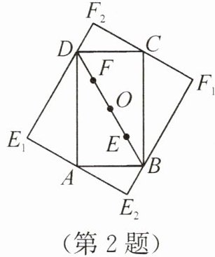 2. 如图,在矩形 $ ABCD $ 中,$ O $ 为对角线 $ BD $ 的中