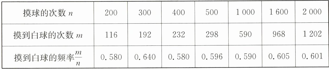 (1)请估计:当 $ n $ 很大时,摸到白球的频率将会接近