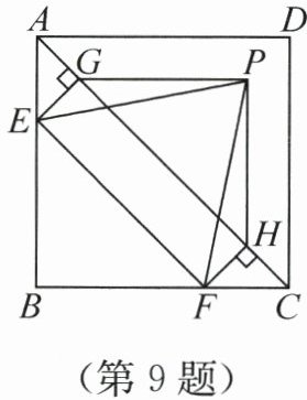 9. (2025·黑龙江大庆)如图,在正方形ABCD中,AB= $\sqrt{18}$,E,F两点分别在线段AB,BC上,且AE=CF= $\sqrt{2}$,连接EF,AC,过E,F两点分别作线段AC的垂线,垂足分别为G,H,动点P在△ACD内部及边界上运动,记四边形EFHG,△PEG,△PEF,△PFH,△PGH的面积分别为S₀,S₁,S₂,S₃,S₄.若点P在运动中始终满足3S₀=S₁+S₂+S₃+S₄,则满足条件的所有点P组成的图形长为(