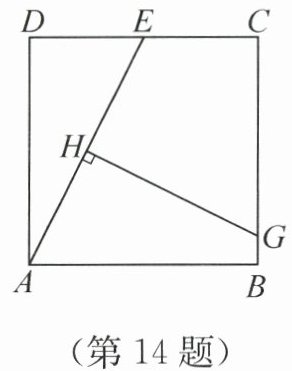 14. 如图,正方形ABCD的边长为8,E是CD的中点,HG垂直平分AE且分别交AE,BC于H,G两点,则BG=