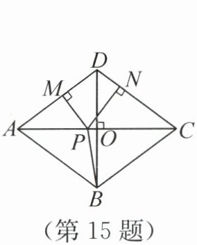 15. 如图,在四边形ABCD中,AC⊥BD于点O,OA=OC=4,OB=OD=3,P为线段AC上一个动点,过点P分别作PM⊥AD于点M,作PN⊥CD于点N,连接PB.在点P的运动过程中,PM+PN+PB的最小值为