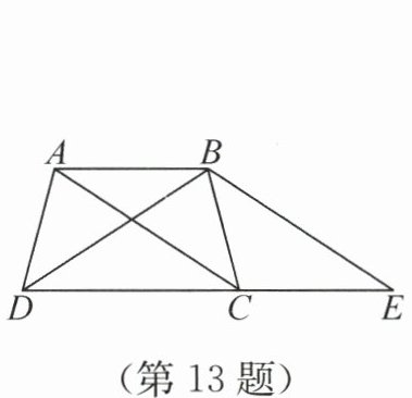 13. (亮点原创)如图,在等腰梯形ABCD中,连接AC,BD,过点B作BE//AC,交DC的延长线于点E.若梯形ABCD的面积为24,高为4,则AC的长为