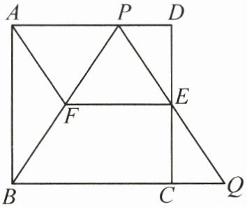 ②设AP=x.又四边形ABCD是边长为2的正方形,所以AD=BC=2.则PD=2 - x.由(1)和(2)①,得△PDE≌△QCE,EF=$\frac{1}{2}$BQ,四边形AFEP是平行四边形,所以CQ=PD=2 - x,EF=AP=x.所以BQ=BC+CQ=4 - x,即EF=$\frac{1}{2}$BQ=$\frac{4 - x}{2}$.所以x=$\frac{4}{3}$.所以AP的长为$\frac{4}{3}$.