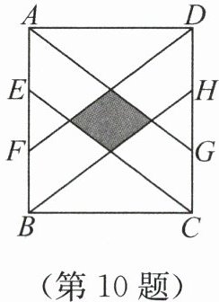 10. 如图,矩形 $ ABCD $ 的面积为 288,$ E $,$ F $,$ G $,$ H $ 分别是边 $ AB $,$ CD $ 的三等分点. 若 $ AD : AB = 8 : 9 $,则图中阴影四边形的周长为(