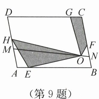 9. 如图,在 $ □ ABCD $ 中,$ AB > AD $,$ E $,$ F $,$ G $,$ H $ 分别为 $ AB $,$ BC $,$ CD $,$ DA $ 上异于端点的四点,满足 $ AE = CG = 1 $,$ DH = BF = 2 $,$ M $,$ N $ 分别为 $ AH $,$ BF $ 上异于端点的两点,连接 $ MN $,$ O $ 为线段 $ MN $ 上一个动点,从点 $ M $ 出发,运动到点 $ N $ 后停止,连接 $ EH $,$ OE $,$ OH $,$ OF $,$ OG $,当图中存在 $ \triangle OEH $ 与四边形 $ OFCG $ 时,随着点 $ O $ 的移动,两者面积之和的变化趋势为(