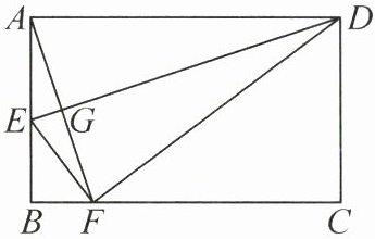 (1)证明:因为 $EA = EF$,$DA = DF$,所以 $DE$ 垂直平分 $AF$,因此 $\angle AGD = 90°$,即 $\angle ADE + \angle DAF = 90°$。又因为 $\angle BAF = \angle ADE$,所以 $\angle BAF + \angle DAF = 90°$,即 $\angle BAD = 90°$。由于四边形 $ABCD$ 是平行四边形,故四边形 $ABCD$ 是矩形。