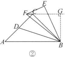 答案:15.2 + √6或√6 - 2 解析:分类讨论如下:①如图①,当点F在点C的右侧时,过点B作BG⊥CF于点G,则∠BGC = ∠BGF = 90°.由题意,得BF = BD.因为AC = BC = 2√2,D是AC的中点,所以CD = 1/2AC = √2.又∠ACB = 90°,所以△ABC是等腰直角三角形,即∠CAB = ∠ABC = 45°.在
