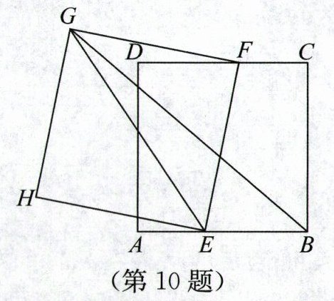 10. 如图,正方形 $ EFGH $ 的边 $ EF $ 过正方形 $ ABCD $ 的中心,$ E $,$ F $ 两点分别在边 $ AB $,连接 $ EG $,$ BG $。若 $ AB = 5 $,$ AE = 2 $,则 $ \triangle BEG $ 的面积为(