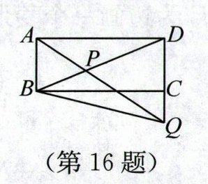 16. (2025·江苏徐州模拟)如图,在矩形 $ ABCD $ 中,$ AB = 5 $,$ AD = 12 $,点 $ P $ 在对角线 $ BD $ 上,且 $ BP = AB $,连接 $ AP $ 并延长,交 $ DC $ 的延长线于点 $ Q $,连接 $ BQ $,则 $ BQ $ 的长为