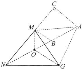 答案:18. $2\sqrt{29}$ 解析:如图,连接$OM$,$ON$,$OG$,以$MG$为一边构造等边三角形$MAG$,以$MO$为一边构造等边三角形$MOB$,连接$AB$,则$OM = OB = BM$,$MG = MA$,$\angle OMB = \angle GMA = 60^{\circ}$.所以$\angle OMB - \angle BMG = \angle GMA - \angle BMG$,即$\angle OMG = \angle BMA$.所以$\triangle MOG \cong \triangle MBA$(SAS).所以$OG = BA$.又$OB = OM$,所以$ON + OM + OG = ON + OB + BA$.所以当$N$,$O$,$B$,$A$四点共线,即$ON$,$OB$,$BA$三条线段在同一条直线上时,点$O$到$\triangle MNG$三个顶点的距离之和最小.过点$A$作$AC ⊥ NM$,交$NM$的延长线于点$C$.因为$\angle NMG = 75^{\circ}$,$\angle GMA = 60^{\circ}$,$\angle NMG + \angle GMA + \angle AMC = 180^{\circ}$,所以$\angle AMC = 180^{\circ} - \angle NMG - \angle GMA = 45^{\circ}$.因为$MG = 4\sqrt{2}$,所以$MA = 4\sqrt{2}$.又$\angle AMC + \angle MAC = 90^{\circ}$,所以$\angle MAC = 90^{\circ} - \angle AMC = 45^{\circ}$,即$\angle MAC = \angle AMC$.所以$CA = CM$.在$Rt \triangle ACM$中,由勾股定理,得$CA^2 + CM^2 = AM^2$,解得$CA = CM = 4$.因为$MN = 6$,所以$CN = CM + MN = 10$.在$Rt \triangle ACN$中,由勾股定理,得$NA = \sqrt{CN^2 + CA^2} = 2\sqrt{29}$.则点$O$到$\triangle MNG$三个顶点的距离之和的最小值是$2\sqrt{29}$.