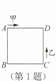 1. (3分)如图,甲、乙两动点分别从正方形$ABCD$的顶点$A$,$C$同时沿正方形的边开始移动,甲点按顺时针方向环行,乙点按逆时针方向环行。若乙的速度是甲的速度的4倍,则它们第2000次相遇在边(