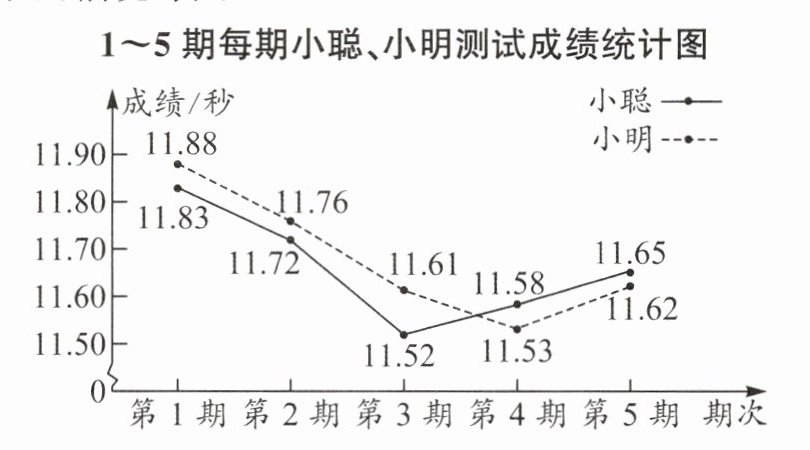 (2)由题图,得第3期小聪的成绩比他上一期的成绩进步最多,且进步了11.72-11.52=0.2(秒).