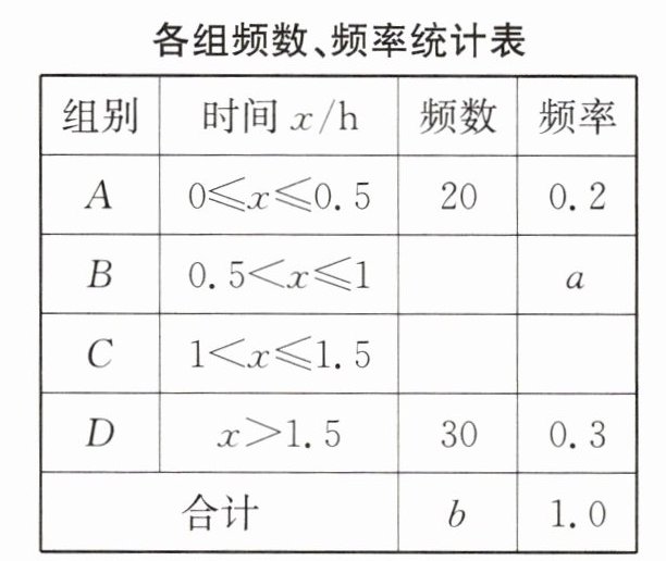 数据观念 小强同学对本校学生完成家庭作业的时间进行了随机抽样调查,并绘制成如下不完整的三个统计图表.