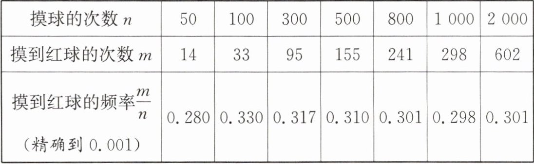 (1) 请估计:当次数$n$足够大时,摸到红球的频率将会接近