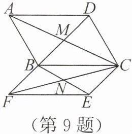 9. 如图,在▱ABCD和▱BCEF中,M,N分别为对角线的交点。若BC=10,且△MDA与△NEF的周长分别为22与21,则四边形BNCM的周长为