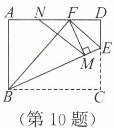 运算能力 如图,在矩形纸片ABCD中,AB=3 cm,BC=4 cm,E为边CD上一点。将△BCE沿BE所在直线折叠,点C恰好落在边AD上的点F处,过点F作FM⊥BE,垂足为M,取AF的中点N,连接MN,则MN=
