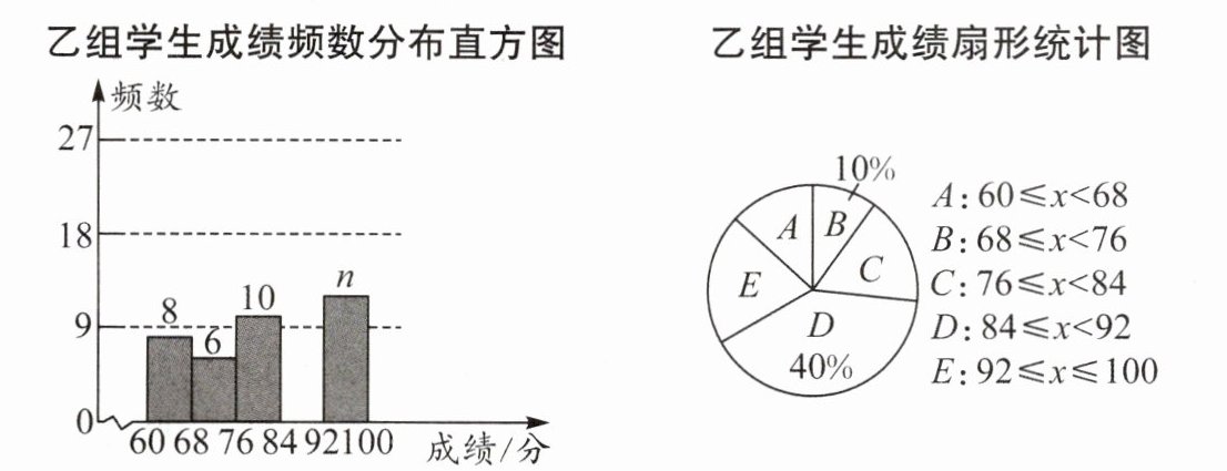 (1)补全乙组学生成绩频数分布直方图,并写出 m,n 的值;