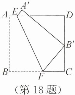 18. (5 分)如图,正方形 $ ABCD $ 的边长为 1,$ E,F $ 两点分别在边 $ AD,BC $ 上,将正方形 $ ABCD $ 沿着 $ EF $ 翻折,点 $ B $ 恰好落在边 $ CD $ 上的点 $ B' $ 处.若四边形 $ ABFE $ 与四边形 $ EFCD $ 的面积比为 $ 3:5 $,则 $ FC $ 的长为