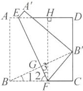 答案:18. $\frac{3}{8}$ 解析:如图,连接$BB'$交$EF$于点$G$,过点$F$作$FH⊥ AD$于点$H$,则$\angle FHD=\angle FHE = 90^{\circ}$。因为四边形$ABCD$是边长为$1$的正方形,四边形$ABFE$与四边形$EFCD$的面积比为$3:5$,所以$S_{\mathrm{四边形}ABFE}=\frac{3}{3 + 5}×1×1=\frac{3}{8}$,$\angle C=\angle D = 90^{\circ}$,$AB = AD = CD = BC = 1$,$AD// BC$。所以$\angle BFH=\angle FHD = 90^{\circ}$,四边形$CDHF$是矩形,即$DH = CF$,$FH = CD$。所以$FH = BC$。设$CF = x$,则$DH = x$,$BF = 1 - x$。所以$S_{\mathrm{四边形}ABFE}=\frac{1}{2}(AE + BF)· AB=\frac{3}{8}$,即$\frac{1}{2}(AE + 1 - x)×1=\frac{3}{8}$,解得$AE = x-\frac{1}{4}$。所以$DE = AD - AE = \frac{5}{4}-x$。所以$EH = DE - DH=\frac{5}{4}-2x$。由翻折的性质,得$B'F = BF = 1 - x$,$BB'⊥ EF$,即$\angle BGF = 90^{\circ}$。所以$\angle1+\angle2 = 90^{\circ}$。因为$\angle2+\angle3 = 90^{\circ}$,所以$\angle1=\angle3$。又$\angle FHE=\angle C = 90^{\circ}$,所以$\triangle EFH\cong\triangle B'BC(ASA)$。所以$EH = B'C$,即$B'C=\frac{5}{4}-2x$。在$\mathrm{Rt}\triangle B'FC$中,由勾股定理,得$B'F^{2}=CF^{2}+B'C^{2}$,所以$(1 - x)^{2}=x^{2}+(\frac{5}{4}-2x)^{2}$,即$4x^{2}-3x+\frac{9}{16}=0$。所以$(2x-\frac{3}{4})^{2}=0$。所以$2x-\frac{3}{4}=0$,即$x=\frac{3}{8}$。所以$FC$的长为$\frac{3}{8}$。