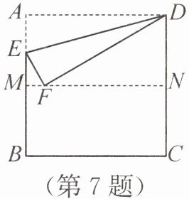 答案:7.C 解析:因为四边形ABCD 是正方形,所以AB//CD,AD=CD=AB,∠A=∠ADC = 90°。由折叠的性质,得DN=$\frac{1}{2}$CD,AM=$\frac{1}{2}$AB,DF=AD,EF=AE,即AM=DN=$\frac{1}{2}$AD。易得四边形AMND 是矩形,所以∠AMN=∠MND = 90°,MN=AD。在Rt△FND 中,由勾股定理,得FN=$\sqrt{DF^{2}-DN^{2}}$=$\frac{\sqrt{3}}{2}$AD,所以FM=(1 - $\frac{\sqrt{3}}{2}$)AD。