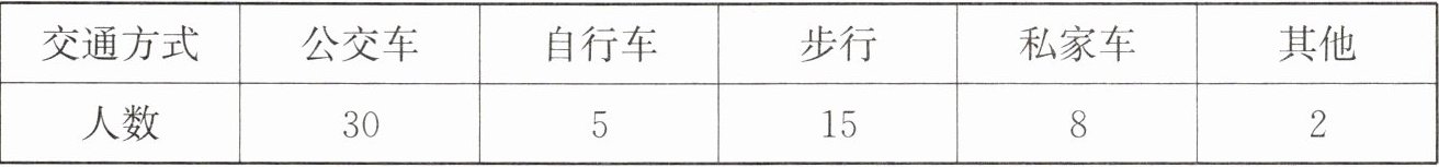 数据观念(2024·四川乐山)为了解学生上学的交通方式,刘老师在九年级800名学生中随机抽取了60名进行问卷调查,并将调查结果制作成如下统计表,则估计该年级学生乘坐公交车上学的人数为(