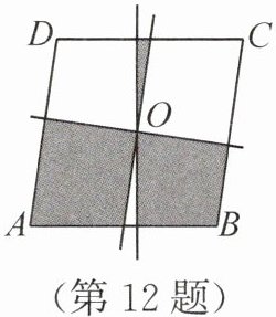 12. 如图,四边形$ABCD$是菱形,$O$是对角线的交点,过点$O$的三条直线将菱形分成空白和阴影部分. 若菱形$ABCD$的两条对角线的长分别为$2\sqrt{2}$cm和$\sqrt{6}$cm,则图中阴影部分的面积为