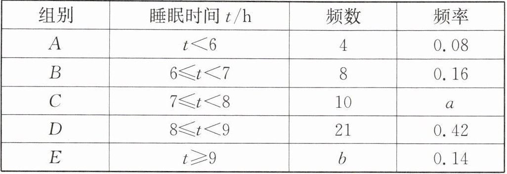 16. (13分)国务院教育督导委员会办公室印发的《关于组织责任督学进行“五项管理”督导的通知》指出,要加强中小学生作业、睡眠、手机、读物、体质管理. 某校数学社团成员采用随机抽样的方法,抽取了八年级部分学生,对他们一周内平均每天的睡眠时间t(h)进行了调查,将数据整理后绘制了如下不完整的统计图表: